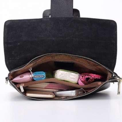 – Bên trong túi gồm ngăn chính và ngăn kéo khóa để được các vật dụng cá nhân như điện thoại, ví tiền, mỹ phẩm; mặt sau túi có ngăn túi sau giúp bạn có thể thuận tiện bỏ đồ vào trong và nhanh chóng lấy ra khi cần; khóa kéo chắc chắn, an tâm khi dùng.